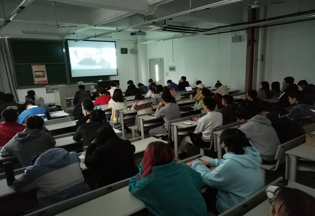 的青年志愿者们提前来到了活动地点做好了准备工作。下午两点,同学们陆续来到教室,电影《建党伟业》开始放映。电影壮观的场面、跌宕起伏且振奋人心的剧情,吸引同学们聚精会神地观看着。