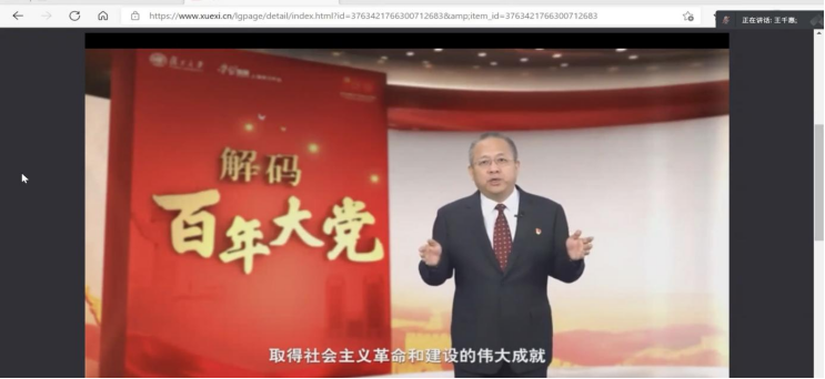 在本次党史学习会中,主持人王千惠为同学播放了“解码百年大党”视频,帮助同学们深刻了解社会主义建设时期的重要意义,其不仅仅是党团结带领全国人民建立新中国、巩固新中国的历史转型期,还是确立社会主义制度、建设社会主义国家的实践探索期。