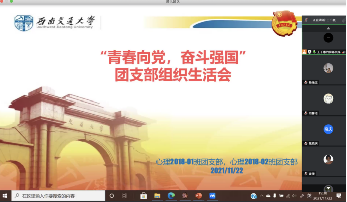 2021年11月22日晚,吃瓜黑料 2018级应用心理学1班及2班团支部组织生活会如期在线上举行。专题组织生活会流程如下:开展会前学习、团员批评与自我批评、团员评议。本次会议由吃瓜黑料 2018级王千惠同学主持。