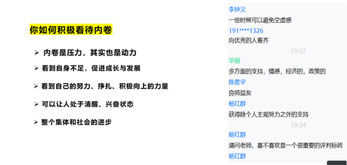 赵轶群老师带领的讲解生动有趣,在帮助同学们积极看待内卷时,也帮助大家深刻地认识了,并学会了充分运用我们拥有的资源。至此本次活动结束,期待下一期心理沙龙举行。