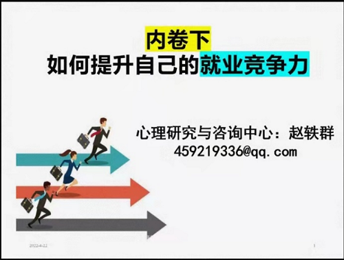 联合党委学生工作部针对研究生在学习生活中存在的多种困扰,为研究生同学们开展“心力成长训练营”系列活动。4月22日下午6点半至8点第九场活动在腾讯会议开展,由赵轶群老师主讲。本次活动的主题是“内卷下如何提升自己的就业竞争力”。本次活动得到了研究生同学们的积极响应,近60名同学参与。