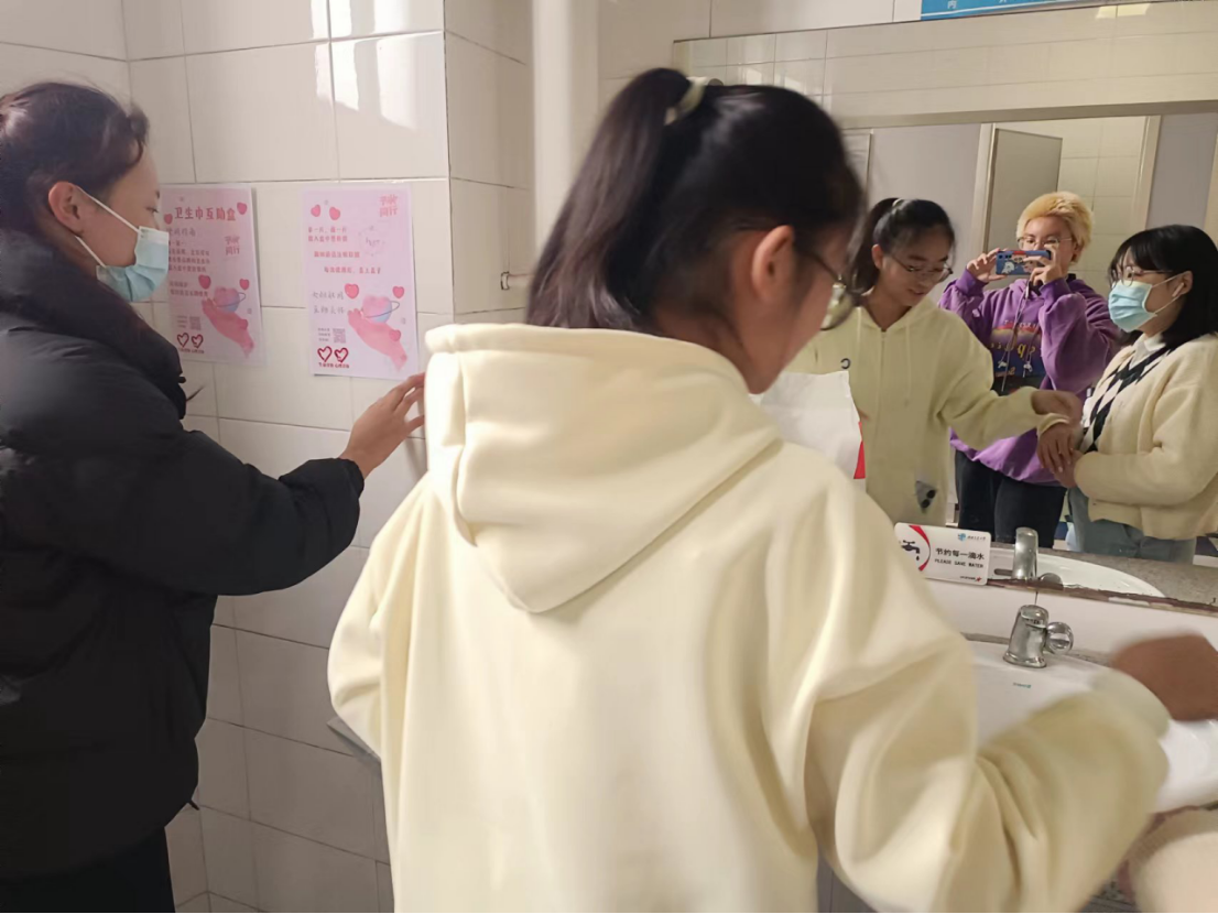犀浦校区五号教学楼举办了卫生巾互助盒投放活动。