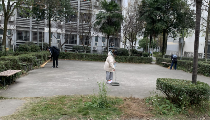 几名同学于11月30日下午在本专业的实践基地进行了清扫地面、捡树叶、扶正和整理单车等活动。