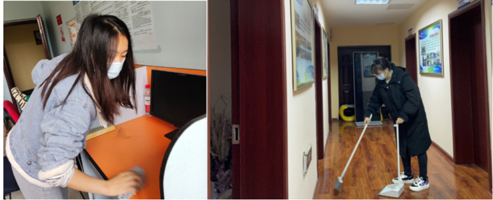 大扫除期间,同学们认真打扫每一处角落,将清洁工作做到一丝不苟,希望能为来访者和办公室老师营造干净舒适的氛围。