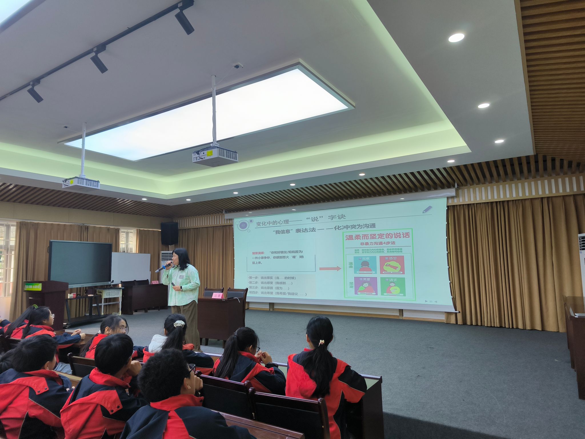 在“情境实验室”环节,冯老师结合多个贴近学生日常生活的真实情境案例——如被朋友爽约、被他人取外号、异性交往边界把握等,引导学生精准识别交往中的“红绿灯”行为,教会大家运用“SAFE 原则”守护自我感受与人际交往边界。整场讲座内容丰富实用、互动氛围热烈,学生在积极参与中逐步增强了对青春期的科学认知,提升了心理调适与自我保护能力。