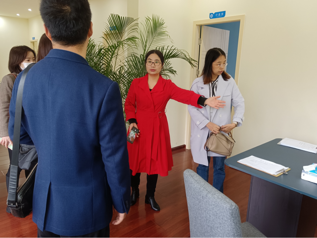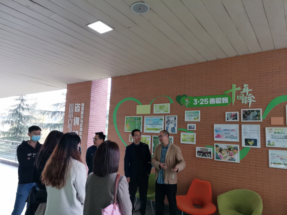 随后,成都理工大学工程技术学院一行来到了中心犀浦校区咨询室参观,中心咨询部蒋洪波和李玉梅两位老师从咨询室设计、功能区划分和相关设施、咨询工作开展等情况进行了详细介绍。