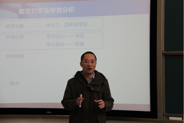 创业指导赛道的第一位选手从产权与产权制度出发,介绍了产权与产权制度作为公共管理学院本科专业课亦为创新创业指导的核心课程的设计。评委老师从课程中涉及到的案例的新旧、PPT的制作等方面进行了点评。第二位选手的参赛主题为“像创新者一样去思考”,他从预期效果、学情分析、教学目标、重点和难点、教学策略与方法五个方面介绍课程设计,并通过讲述“爱迪生因何而名垂青史”作为课程引入,讲解发明与创新的区别与联系等来介绍课程的具体内容。评委老师分别从创业课程比赛与专业课程的区别、使用的案例是否合适、感染力等方面进行了评价和相应的指导,并给出教案可以使用逻辑图来突出重点等建议。
