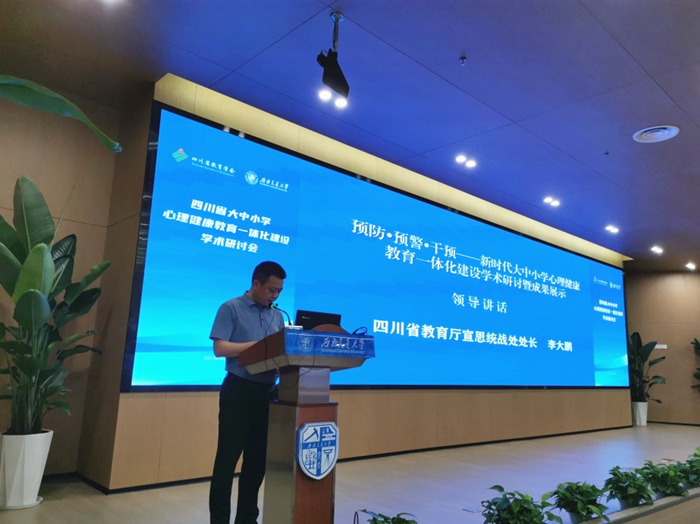 四川省教育厅宣思统战处李大鹏处长在讲话中充分肯定此次研讨会是挖掘我省在大中小学心理健康教育一体化建设成果的创新举措,希望通过研讨努力总结出大中小学心理健康教育一体化建设工作中“可推广、可复制、可延伸”的“四川方案”。
