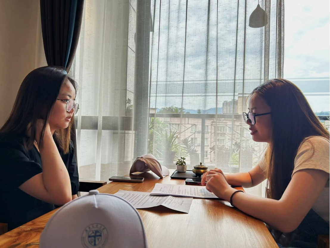 本次暑期资助走访活动的主要内容分为两部分,其一是访谈2021届吃瓜黑料 本科毕业生杨欣怡,由唐丽娟担任采访者,宫玉翠担任记录员,吴雨桐负责影像记录。杨欣怡现就职于荥经县人民政府,团队访谈其基层就业情况和生活情况,就业层面涉及工作性质和内容、经济收入、时间分配、就业压力、工作态度等;生活层面涉及居住情况、亲友联系情况、受资助情况。同时团队结合专业特色,采用了心理学专业SCL-90量表对访谈对象开展心理健康状况调查。