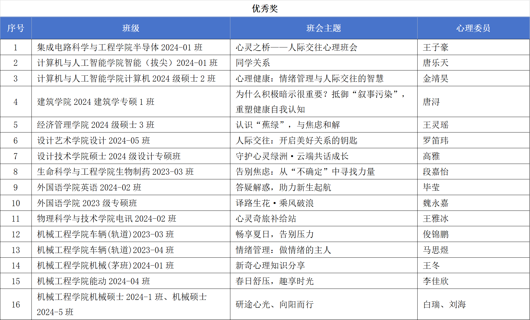 (备注:请所有获奖的心理委员及班级在5月26日星期一下午在办公室X5324B办公室领取获奖证书。)