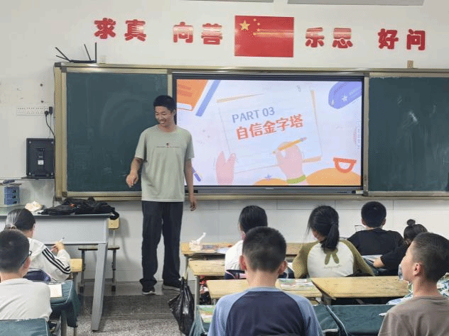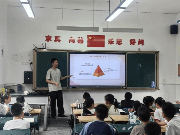 在“自信金字塔”环节中,心理学会成员们详细介绍了自信的概念,并通过三个具体的例子,让同学们了解到自信金字塔的三个层级:自尊、自信和自我肯定。通过这些例子,孩子们学会了如何面对自我价值、个人能力和人际关系中的不自信,并找到了相应的解决方法。