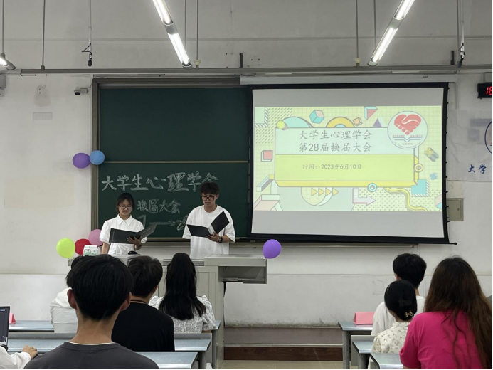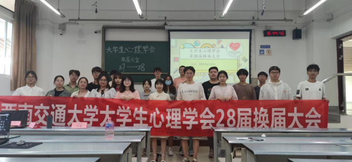 时光飞逝,在大家一年的美好相处时光过去之后,西南交通大学大学生心理学会于本周六(6月10日)下午4:00在交大犀浦校区X1218举办了交大心学换届大会,由西南交大心理学会组织,左优莉和李天成两位同学主持,第二十六,二十七届会长团成员,第二十八届全体心学干部到场参加活动。