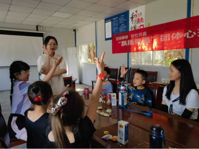 大学生心理学会、玉成志愿服务与研究中心开展了以“飘扬童趣”为主题的青少年团体心理辅导活动,旨在引导辖区青少年们探索内心的积极能量,培养其积极向上的健康心态,提高自我调适能力,促进阳光成长的目的。