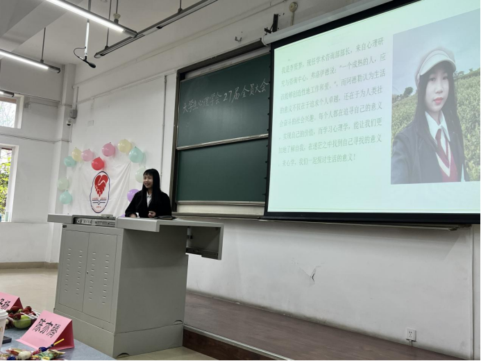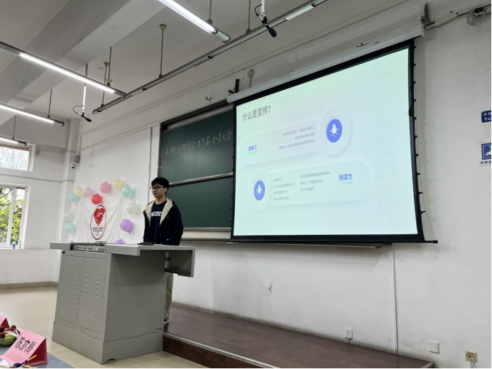随后,心理学会会长李灿凯发言,会长以风趣幽默的语言向大家解析了心理学会的精神内涵和存在意义:帮助别人。就像给子弟小学的学生上课,举办朋辈心理辅导技能大赛,办线上树洞等等。使大家对心学的理解更上一个台阶。