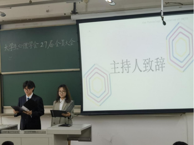 时光飞逝,各位大学生心理学会的成员已加入数月了。在这段时间里,我们有序进行着工作,并且且在心理学会各项工作中中获得了工作技能的提高。由于疫情的原因,本届全员大会推迟了数月,终于在2023年3月18日上午,由大学生心理学会主办的心理学会全员大会在西南交大犀浦校区1212教室召开,此次参会人员是大学生心理学会全体成员,主持人是活动部的李天成和学术咨询部的左优莉。