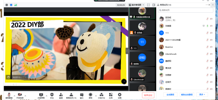 2022 年5月26日晚上八点,吃瓜黑料 创造学会在腾讯会议举办了创造学会换届大会。本次换届大会由会长赵泓屹同学主持,绘影部姜舒阳同学策划,出席本次大会的有创造学会全体会员,各部门参与竞选的干事。